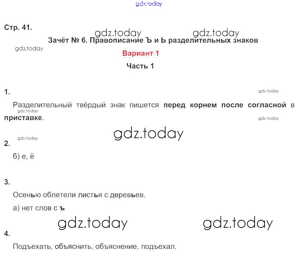 На страницах сайта gdz.today вы найдете учебный и вспомогательный материал, направленный на улучшения знаний школьной программы. ГДЗ - онлайн мир знаний Решение к части 1. Страницы 41 Зачётным работам по Русскому языку для 4 класса Алимпиева, Векшина Экзамен УМК 2016