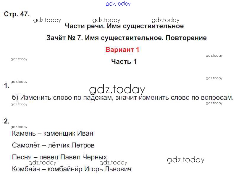 На страницах сайта gdz.today вы найдете учебный и вспомогательный материал, направленный на улучшения знаний школьной программы. ГДЗ - онлайн мир знаний Решение к части 1. Страницы 47 Зачётным работам по Русскому языку для 4 класса Алимпиева, Векшина Экзамен УМК 2016