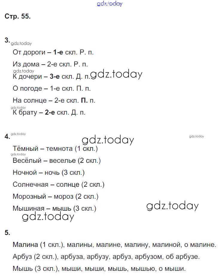 На страницах сайта gdz.today вы найдете учебный и вспомогательный материал, направленный на улучшения знаний школьной программы. ГДЗ - онлайн мир знаний Решение к части 1. Страницы 55 Зачётным работам по Русскому языку для 4 класса Алимпиева, Векшина Экзамен УМК 2016