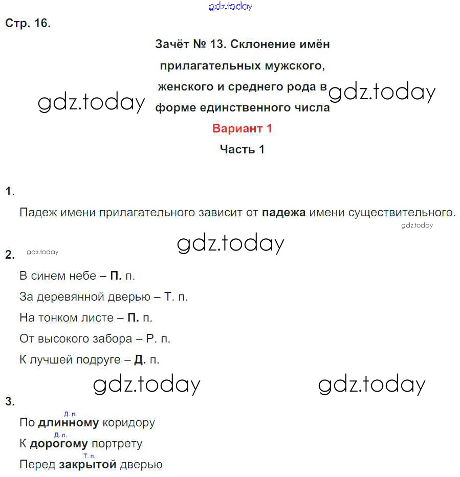 На страницах сайта gdz.today вы найдете учебный и вспомогательный материал, направленный на улучшения знаний школьной программы. ГДЗ - онлайн мир знаний Решение к части 2. Страницы 16 Зачётным работам по Русскому языку для 4 класса Алимпиева, Векшина Экзамен УМК 2016