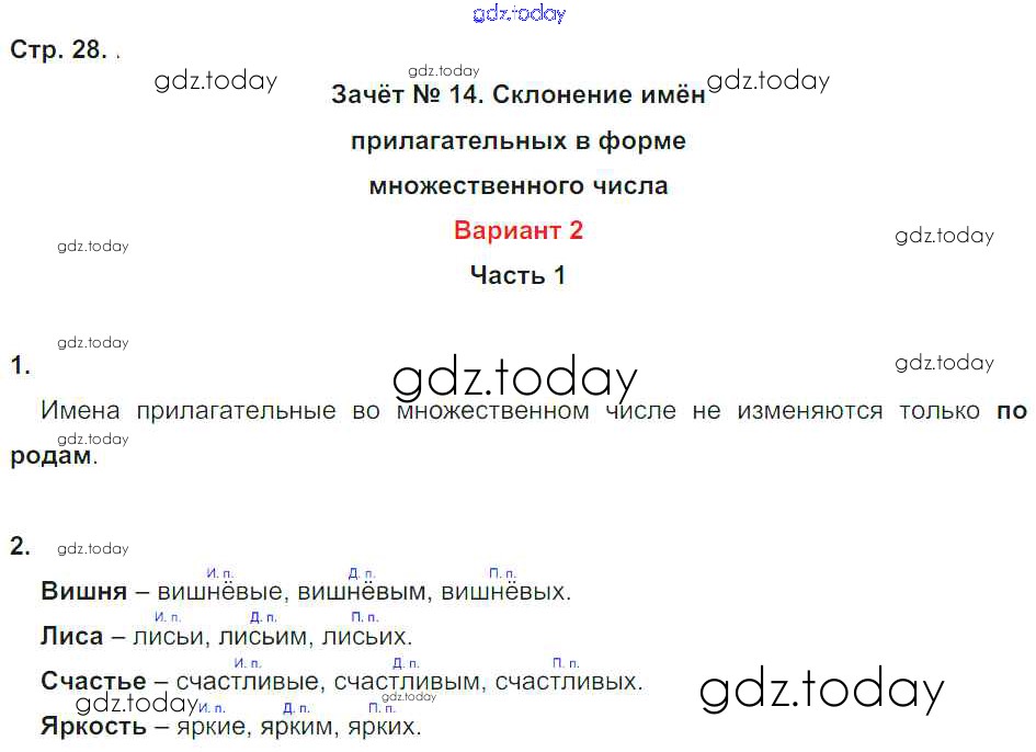 На страницах сайта gdz.today вы найдете учебный и вспомогательный материал, направленный на улучшения знаний школьной программы. ГДЗ - онлайн мир знаний Решение к части 2. Страницы 28 Зачётным работам по Русскому языку для 4 класса Алимпиева, Векшина Экзамен УМК 2016