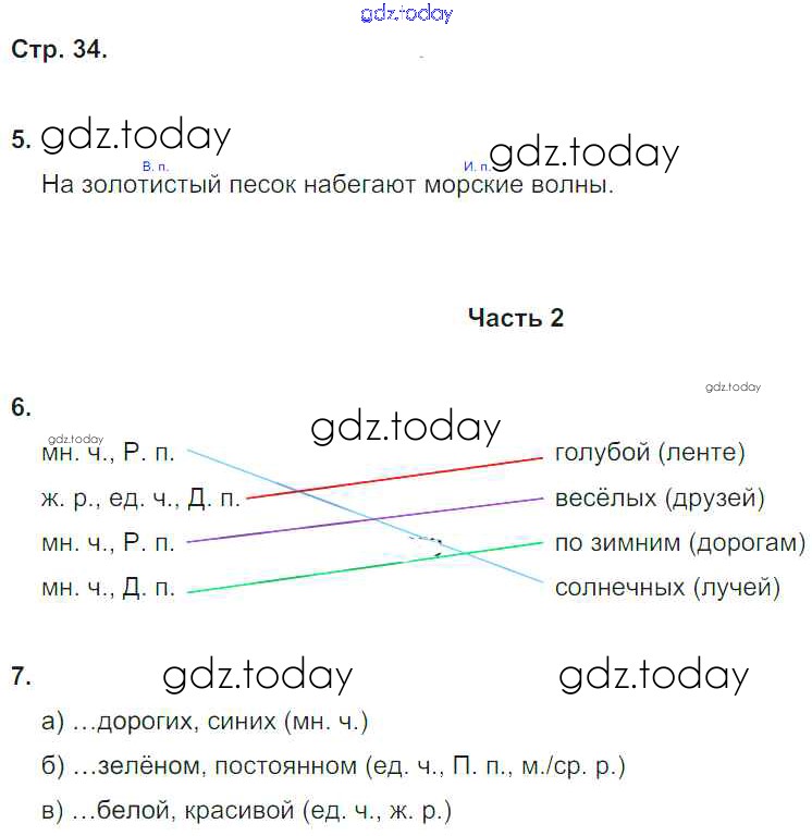 На страницах сайта gdz.today вы найдете учебный и вспомогательный материал, направленный на улучшения знаний школьной программы. ГДЗ - онлайн мир знаний Решение к части 2. Страницы 34 Зачётным работам по Русскому языку для 4 класса Алимпиева, Векшина Экзамен УМК 2016