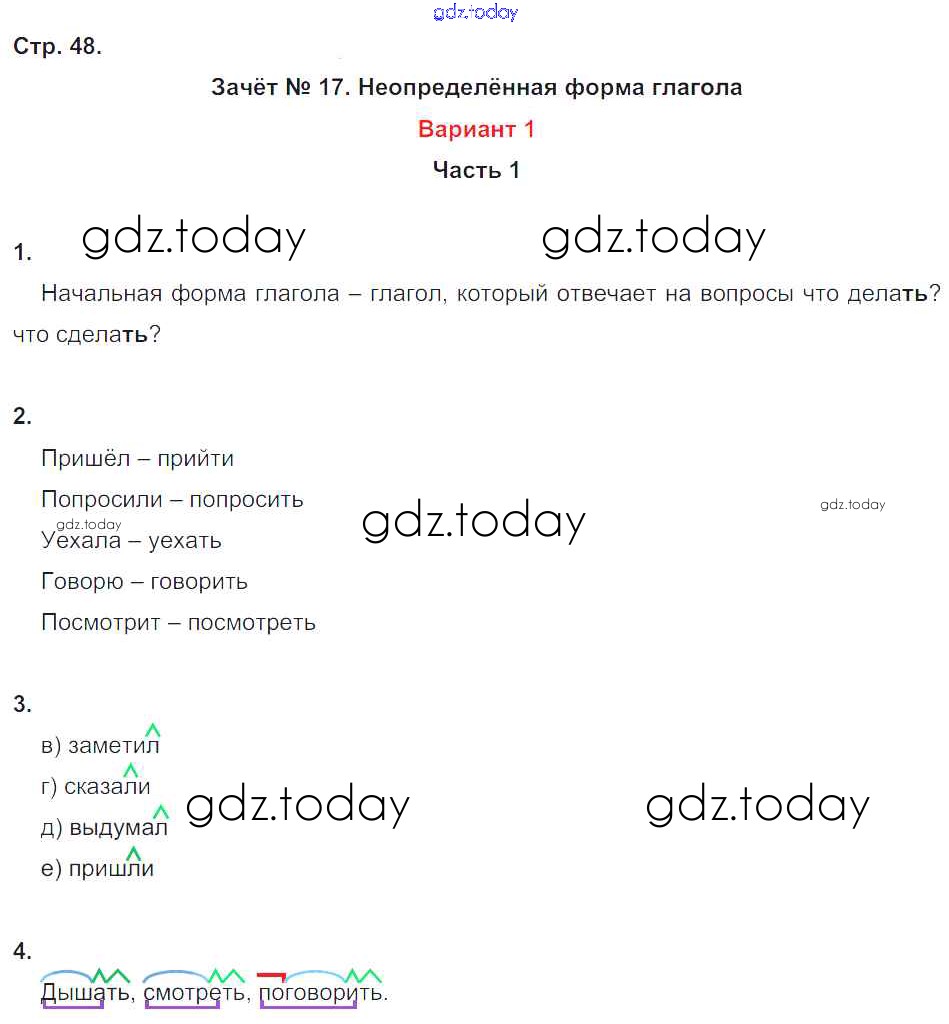 На страницах сайта gdz.today вы найдете учебный и вспомогательный материал, направленный на улучшения знаний школьной программы. ГДЗ - онлайн мир знаний Решение к части 2. Страницы 48 Зачётным работам по Русскому языку для 4 класса Алимпиева, Векшина Экзамен УМК 2016