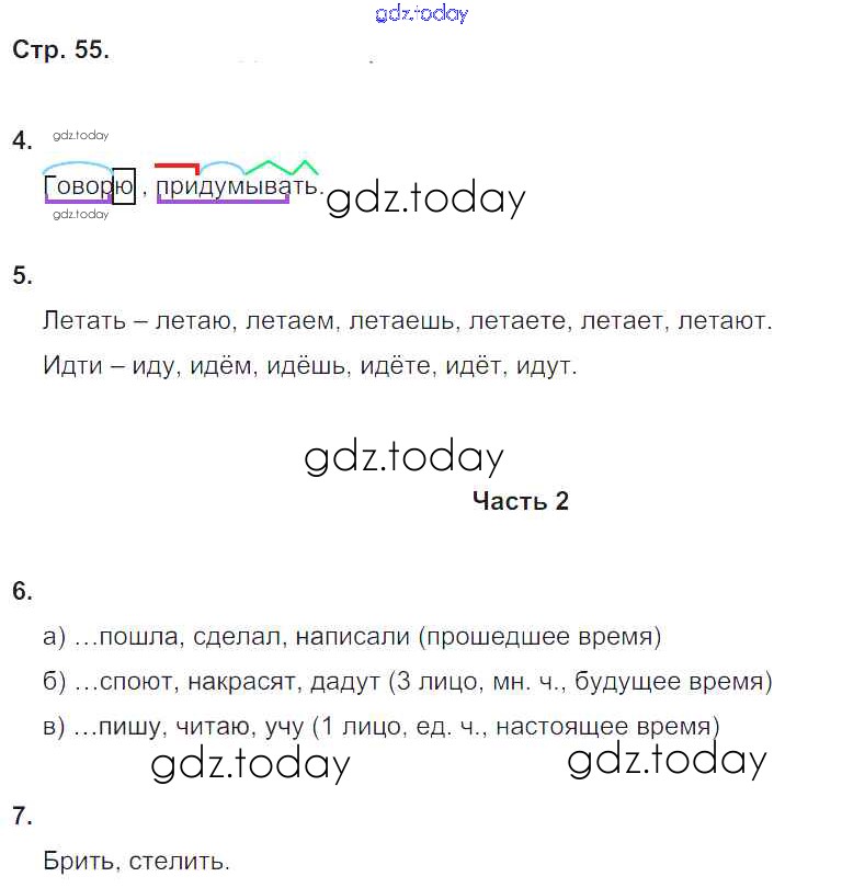 На страницах сайта gdz.today вы найдете учебный и вспомогательный материал, направленный на улучшения знаний школьной программы. ГДЗ - онлайн мир знаний Решение к части 2. Страницы 55 Зачётным работам по Русскому языку для 4 класса Алимпиева, Векшина Экзамен УМК 2016