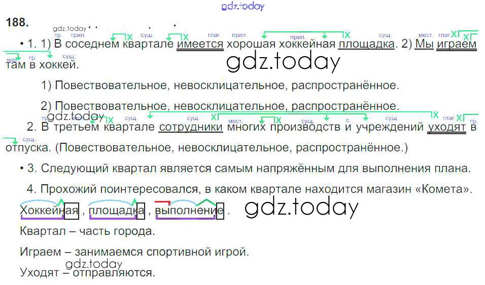 На страницах сайта gdz.today вы найдете учебный и вспомогательный материал, направленный на улучшения знаний школьной программы. ГДЗ - онлайн мир знаний Упражнения Решение к части 1 188 Учебнику по Русскому языку для 4 класса Желтовская, Калинина Аст/Астрель Планета знаний 2013
