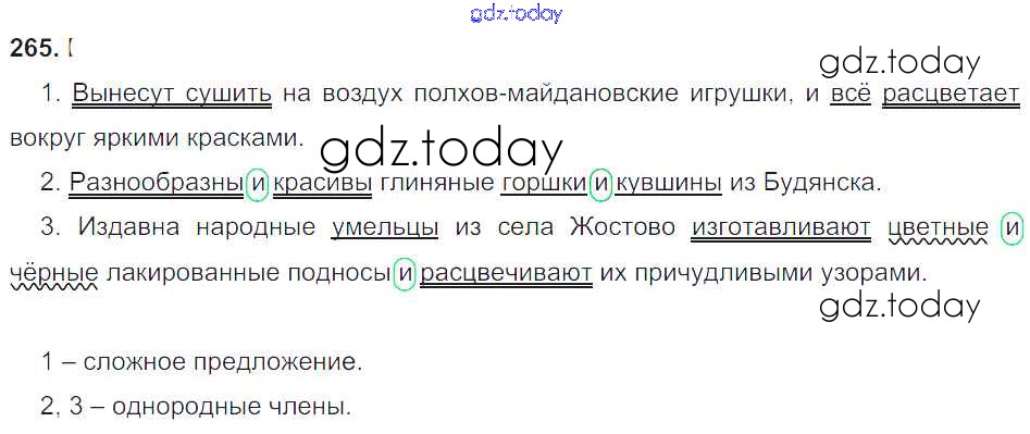 На страницах сайта gdz.today вы найдете учебный и вспомогательный материал, направленный на улучшения знаний школьной программы. ГДЗ - онлайн мир знаний Упражнения Решение к части 1 265 Учебнику по Русскому языку для 4 класса Желтовская, Калинина Аст/Астрель Планета знаний 2013