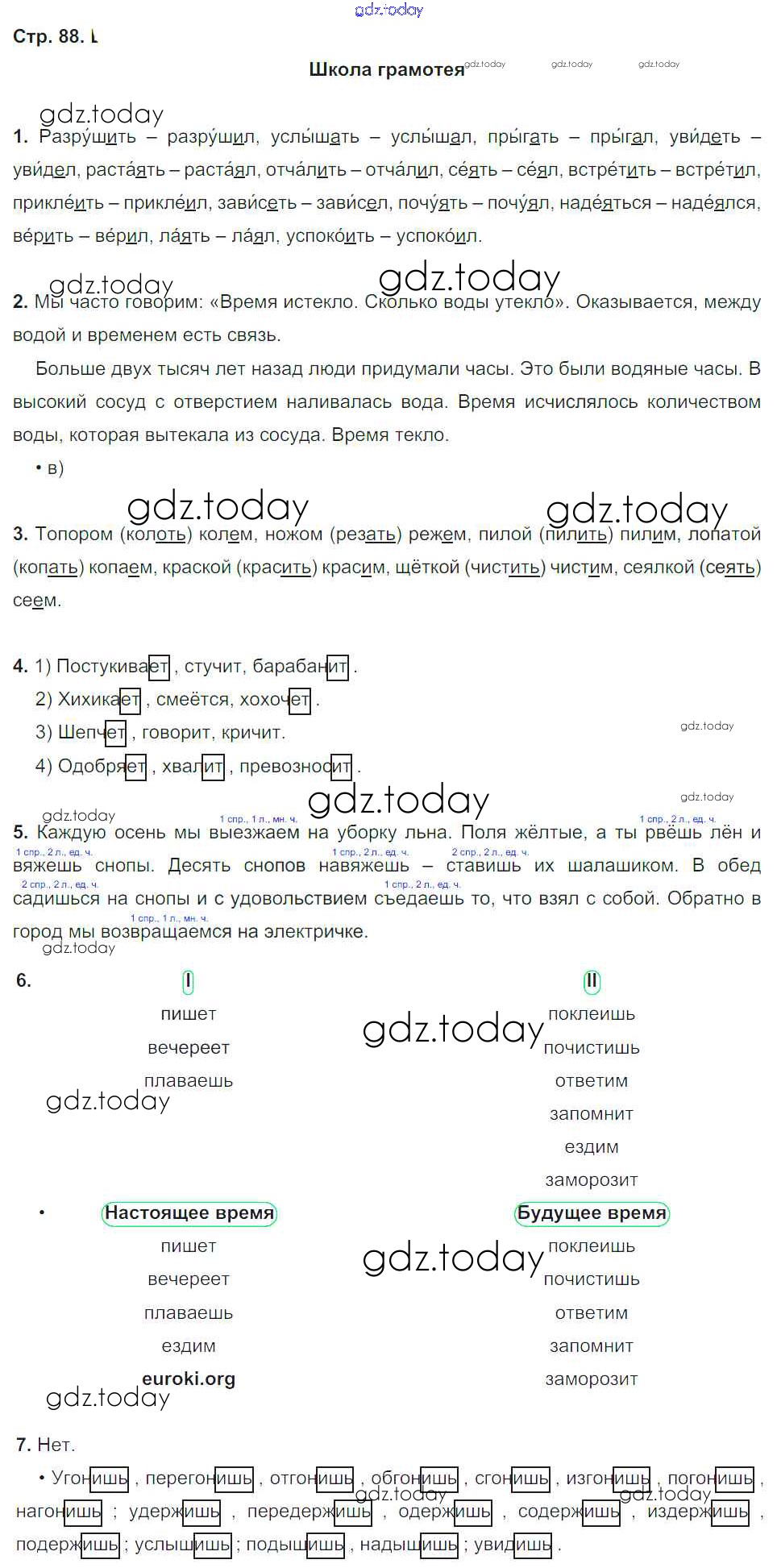 На страницах сайта gdz.today вы найдете учебный и вспомогательный материал, направленный на улучшения знаний школьной программы. ГДЗ - онлайн мир знаний Школа грамотея Решение к части 1 стр. 88 Учебнику по Русскому языку для 4 класса Желтовская, Калинина Аст/Астрель Планета знаний 2013