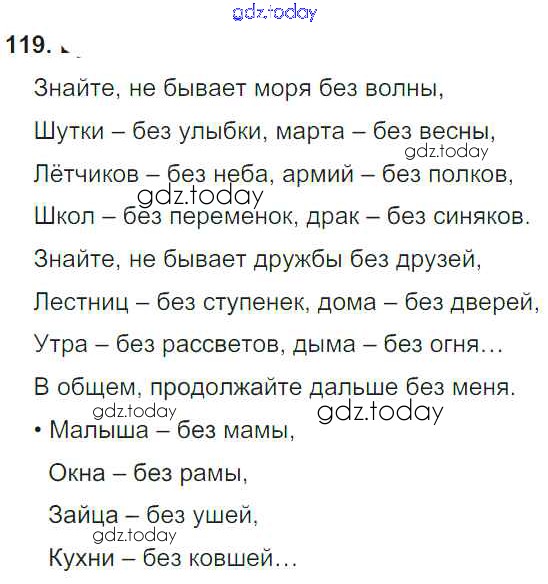 На страницах сайта gdz.today вы найдете учебный и вспомогательный материал, направленный на улучшения знаний школьной программы. ГДЗ - онлайн мир знаний Упражнения Решение к части 2 119 Учебнику по Русскому языку для 4 класса Желтовская, Калинина Аст/Астрель Планета знаний 2013