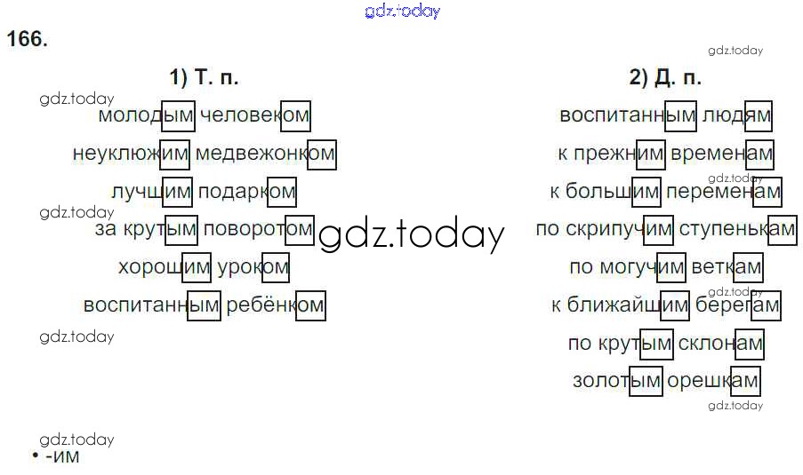 На страницах сайта gdz.today вы найдете учебный и вспомогательный материал, направленный на улучшения знаний школьной программы. ГДЗ - онлайн мир знаний Упражнения Решение к части 2 166 Учебнику по Русскому языку для 4 класса Желтовская, Калинина Аст/Астрель Планета знаний 2013