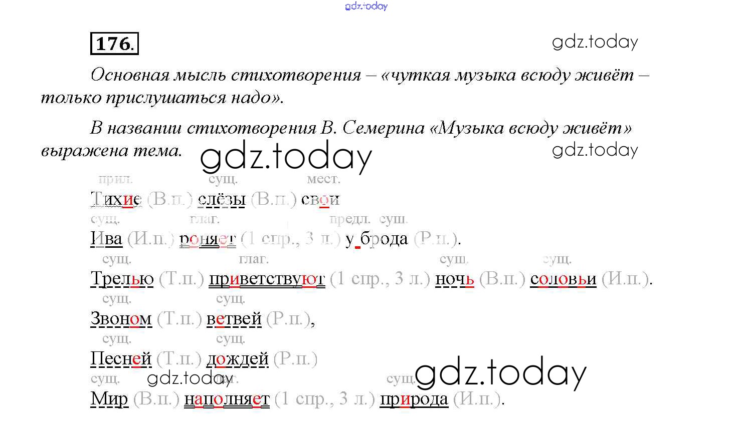 На страницах сайта gdz.today вы найдете учебный и вспомогательный материал, направленный на улучшения знаний школьной программы. ГДЗ - онлайн мир знаний Упражнения Решение к части 2 176 Учебнику по Русскому языку для 4 класса Желтовская, Калинина Аст/Астрель Планета знаний 2013