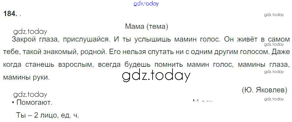 На страницах сайта gdz.today вы найдете учебный и вспомогательный материал, направленный на улучшения знаний школьной программы. ГДЗ - онлайн мир знаний Упражнения Решение к части 2 184 Учебнику по Русскому языку для 4 класса Желтовская, Калинина Аст/Астрель Планета знаний 2013