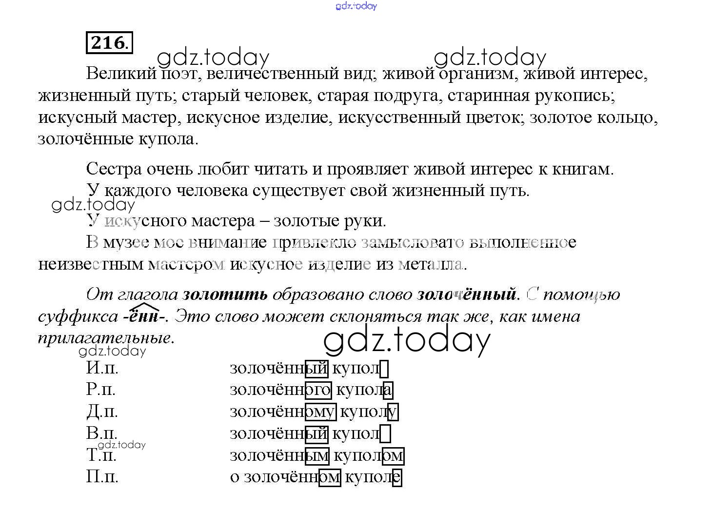 На страницах сайта gdz.today вы найдете учебный и вспомогательный материал, направленный на улучшения знаний школьной программы. ГДЗ - онлайн мир знаний Упражнения Решение к части 2 216 Учебнику по Русскому языку для 4 класса Желтовская, Калинина Аст/Астрель Планета знаний 2013