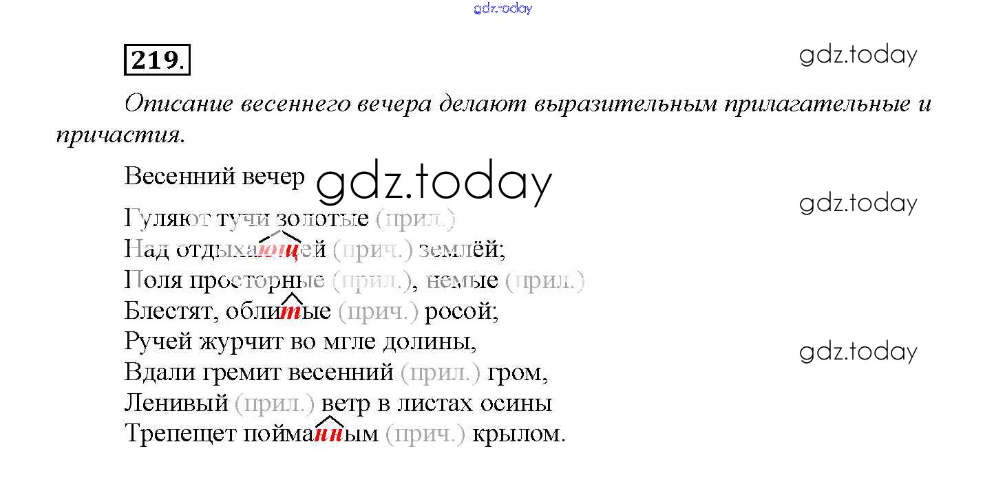 На страницах сайта gdz.today вы найдете учебный и вспомогательный материал, направленный на улучшения знаний школьной программы. ГДЗ - онлайн мир знаний Упражнения Решение к части 2 219 Учебнику по Русскому языку для 4 класса Желтовская, Калинина Аст/Астрель Планета знаний 2013