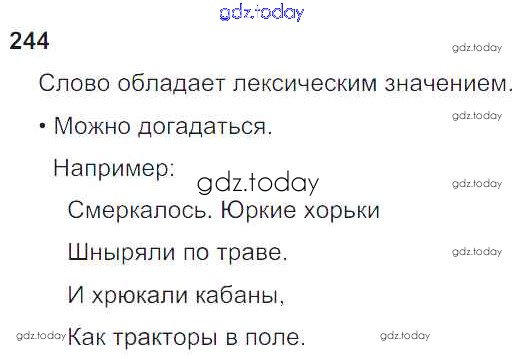 На страницах сайта gdz.today вы найдете учебный и вспомогательный материал, направленный на улучшения знаний школьной программы. ГДЗ - онлайн мир знаний Упражнения Решение к части 2 244 Учебнику по Русскому языку для 4 класса Желтовская, Калинина Аст/Астрель Планета знаний 2013