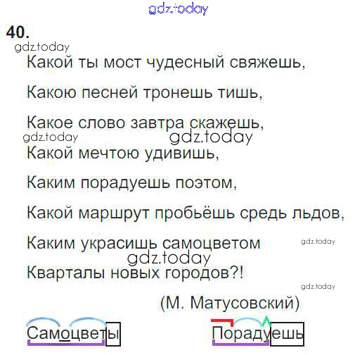 На страницах сайта gdz.today вы найдете учебный и вспомогательный материал, направленный на улучшения знаний школьной программы. ГДЗ - онлайн мир знаний Упражнения Решение к части 2 40 Учебнику по Русскому языку для 4 класса Желтовская, Калинина Аст/Астрель Планета знаний 2013