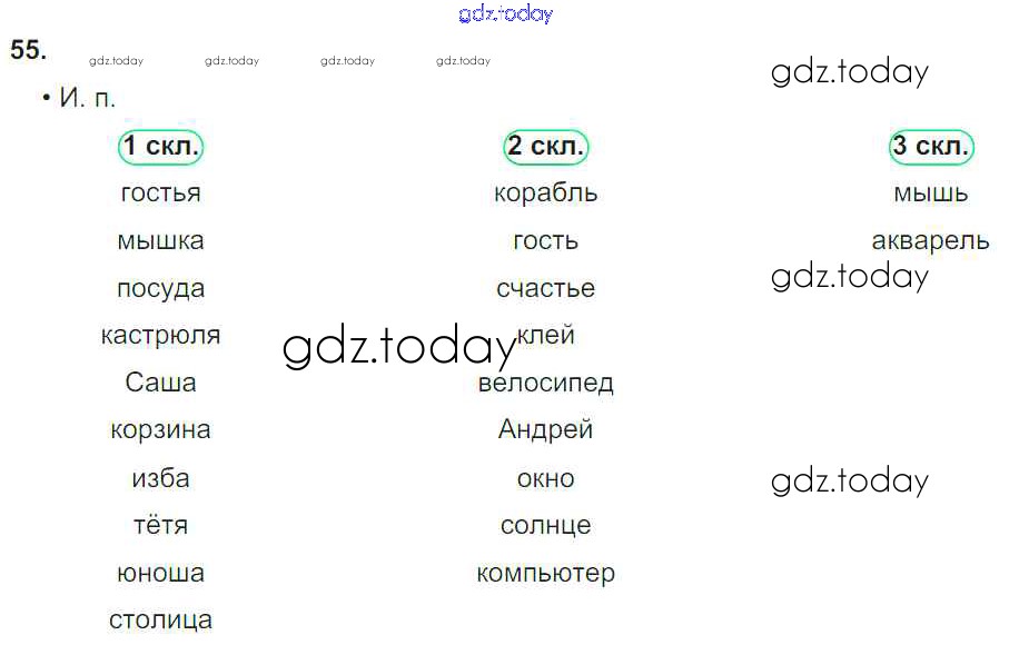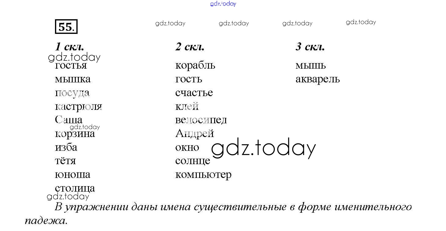 На страницах сайта gdz.today вы найдете учебный и вспомогательный материал, направленный на улучшения знаний школьной программы. ГДЗ - онлайн мир знаний Упражнения Решение к части 2 55 Учебнику по Русскому языку для 4 класса Желтовская, Калинина Аст/Астрель Планета знаний 2013