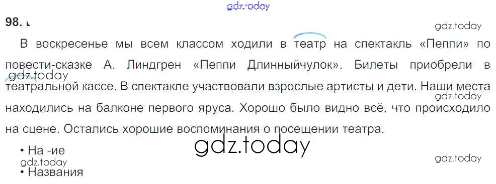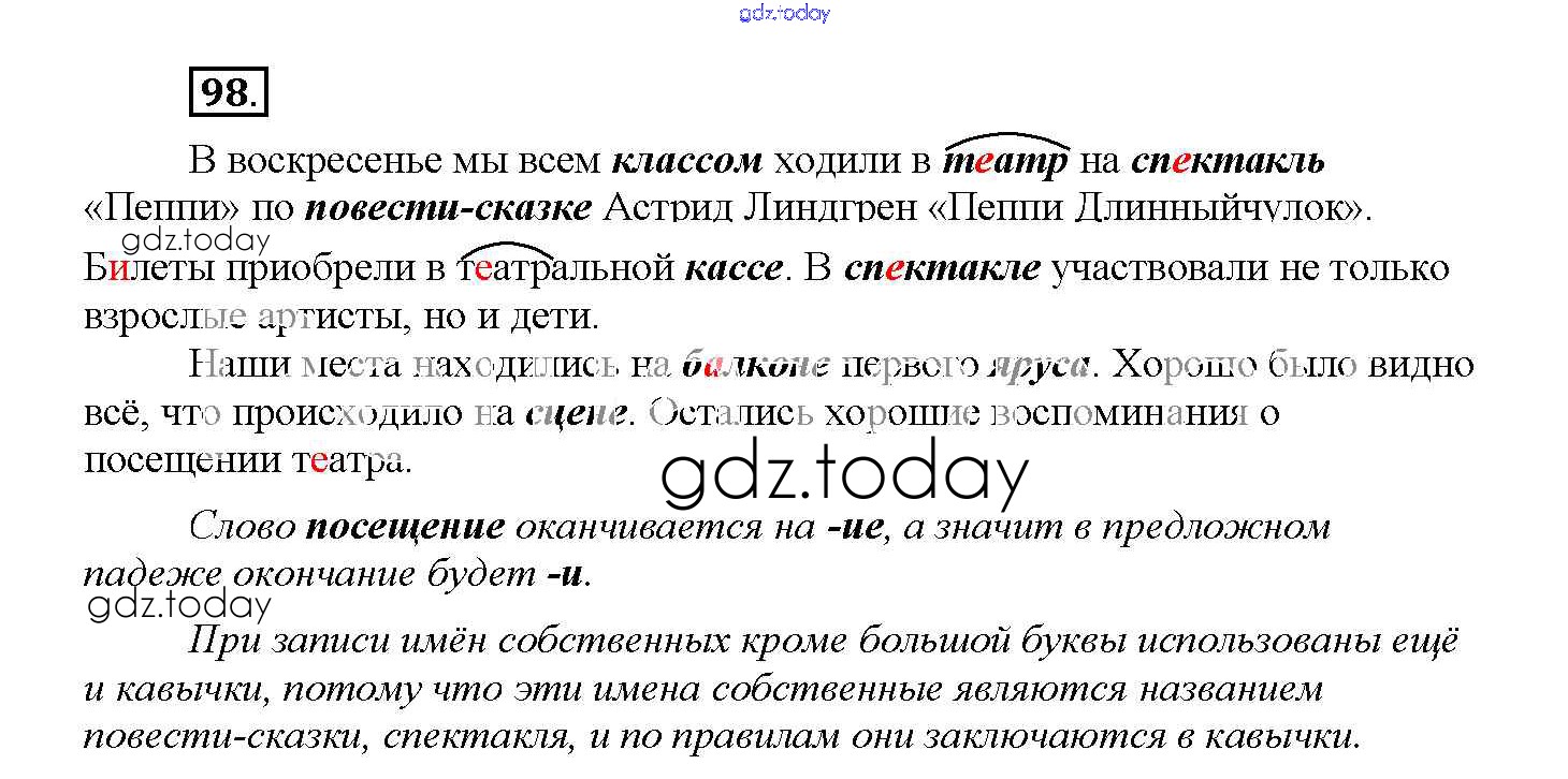 На страницах сайта gdz.today вы найдете учебный и вспомогательный материал, направленный на улучшения знаний школьной программы. ГДЗ - онлайн мир знаний Упражнения Решение к части 2 98 Учебнику по Русскому языку для 4 класса Желтовская, Калинина Аст/Астрель Планета знаний 2013