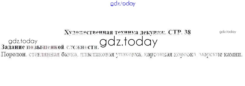 На страницах сайта gdz.today вы найдете учебный и вспомогательный материал, направленный на улучшения знаний школьной программы. ГДЗ - онлайн мир знаний Страницы (решение) 38 Рабочей тетради по Технологии для 4 класса Лутцева, Зуева Просвещение Школа России 2019