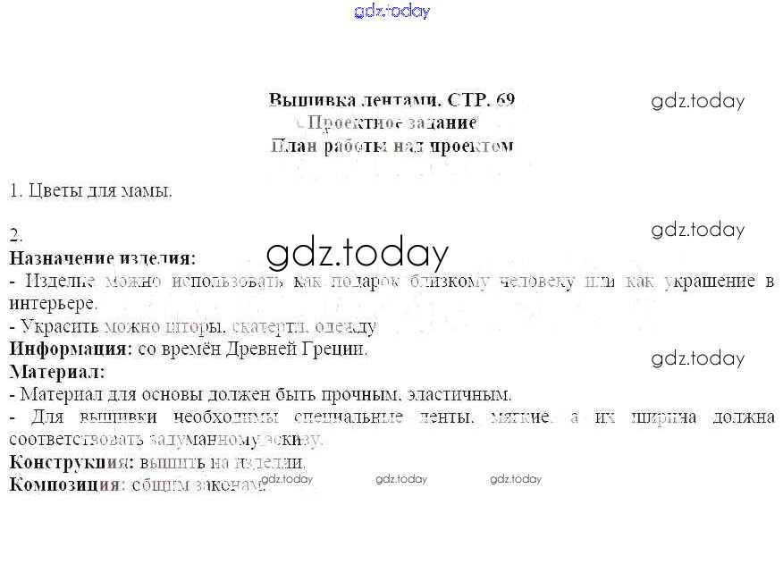 На страницах сайта gdz.today вы найдете учебный и вспомогательный материал, направленный на улучшения знаний школьной программы. ГДЗ - онлайн мир знаний Страницы (решение) 69 Рабочей тетради по Технологии для 4 класса Лутцева, Зуева Просвещение Школа России 2019