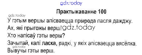 На страницах сайта gdz.today вы найдете учебный и вспомогательный материал, направленный на улучшения знаний школьной программы. ГДЗ - онлайн мир знаний Рашальнік да часткі 1. Практыкаванні 100 Учебнику по Белорусскому языку для 5 класса Красней, Несцяровіч Национальный институт образования 2014