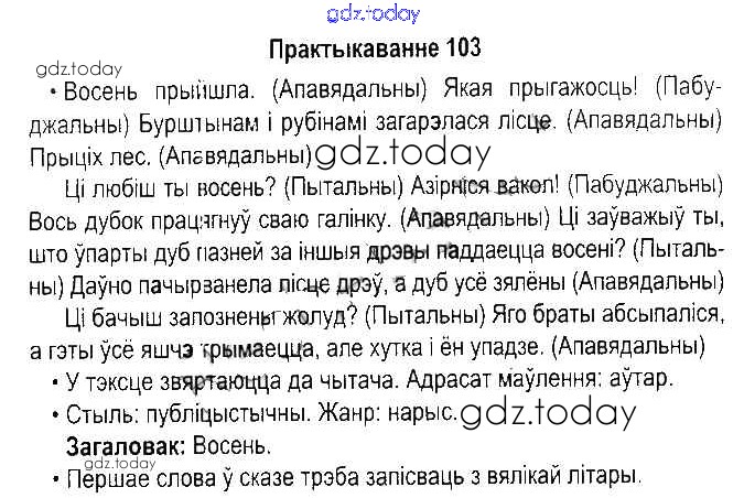 Ответы к Рашальнік да часткі 1. Практыкаванні 103 Учебнику по Белорусскому языку для 5 класса Красней, Несцяровіч Национальный институт образования 2014