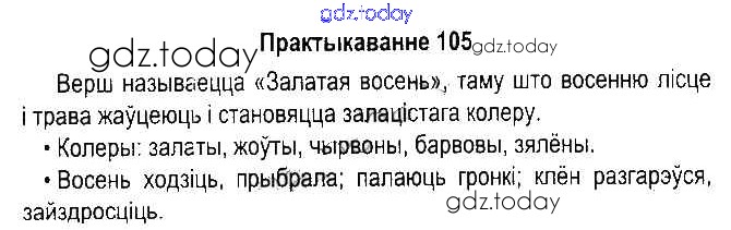 На страницах сайта gdz.today вы найдете учебный и вспомогательный материал, направленный на улучшения знаний школьной программы. ГДЗ - онлайн мир знаний Рашальнік да часткі 1. Практыкаванні 105 Учебнику по Белорусскому языку для 5 класса Красней, Несцяровіч Национальный институт образования 2014
