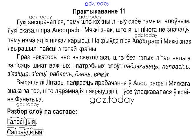 На страницах сайта gdz.today вы найдете учебный и вспомогательный материал, направленный на улучшения знаний школьной программы. ГДЗ - онлайн мир знаний Рашальнік да часткі 1. Практыкаванні 11 Учебнику по Белорусскому языку для 5 класса Красней, Несцяровіч Национальный институт образования 2014