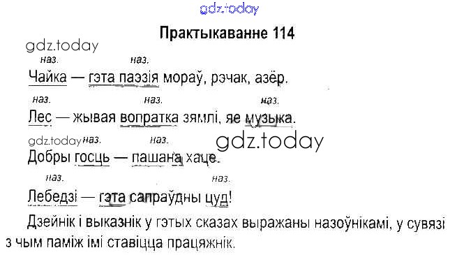 На страницах сайта gdz.today вы найдете учебный и вспомогательный материал, направленный на улучшения знаний школьной программы. ГДЗ - онлайн мир знаний Рашальнік да часткі 1. Практыкаванні 114 Учебнику по Белорусскому языку для 5 класса Красней, Несцяровіч Национальный институт образования 2014