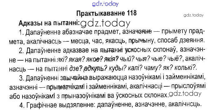 На страницах сайта gdz.today вы найдете учебный и вспомогательный материал, направленный на улучшения знаний школьной программы. ГДЗ - онлайн мир знаний Рашальнік да часткі 1. Практыкаванні 118 Учебнику по Белорусскому языку для 5 класса Красней, Несцяровіч Национальный институт образования 2014