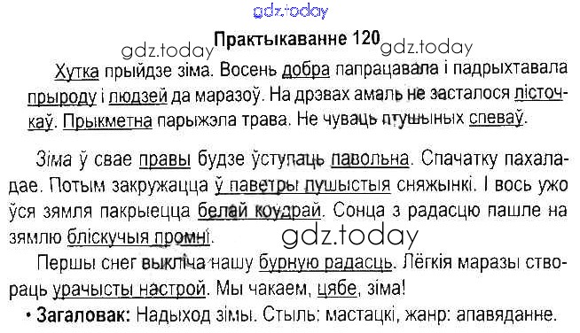На страницах сайта gdz.today вы найдете учебный и вспомогательный материал, направленный на улучшения знаний школьной программы. ГДЗ - онлайн мир знаний Рашальнік да часткі 1. Практыкаванні 120 Учебнику по Белорусскому языку для 5 класса Красней, Несцяровіч Национальный институт образования 2014