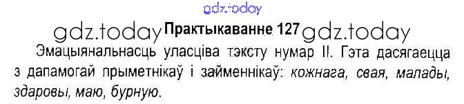 На страницах сайта gdz.today вы найдете учебный и вспомогательный материал, направленный на улучшения знаний школьной программы. ГДЗ - онлайн мир знаний Рашальнік да часткі 1. Практыкаванні 127 Учебнику по Белорусскому языку для 5 класса Красней, Несцяровіч Национальный институт образования 2014