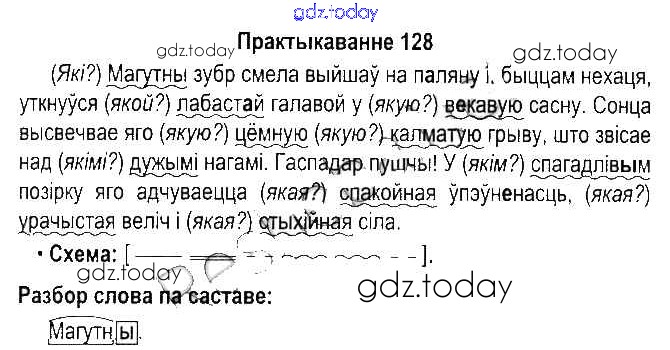 На страницах сайта gdz.today вы найдете учебный и вспомогательный материал, направленный на улучшения знаний школьной программы. ГДЗ - онлайн мир знаний Рашальнік да часткі 1. Практыкаванні 128 Учебнику по Белорусскому языку для 5 класса Красней, Несцяровіч Национальный институт образования 2014