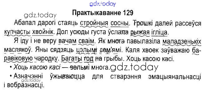 На страницах сайта gdz.today вы найдете учебный и вспомогательный материал, направленный на улучшения знаний школьной программы. ГДЗ - онлайн мир знаний Рашальнік да часткі 1. Практыкаванні 129 Учебнику по Белорусскому языку для 5 класса Красней, Несцяровіч Национальный институт образования 2014