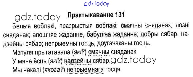 На страницах сайта gdz.today вы найдете учебный и вспомогательный материал, направленный на улучшения знаний школьной программы. ГДЗ - онлайн мир знаний Рашальнік да часткі 1. Практыкаванні 131 Учебнику по Белорусскому языку для 5 класса Красней, Несцяровіч Национальный институт образования 2014