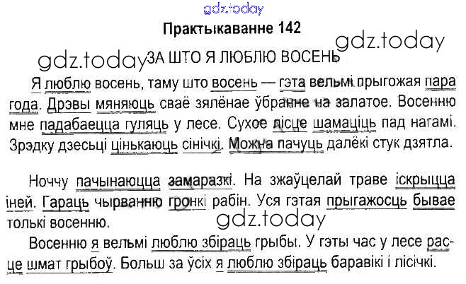 На страницах сайта gdz.today вы найдете учебный и вспомогательный материал, направленный на улучшения знаний школьной программы. ГДЗ - онлайн мир знаний Рашальнік да часткі 1. Практыкаванні 142 Учебнику по Белорусскому языку для 5 класса Красней, Несцяровіч Национальный институт образования 2014