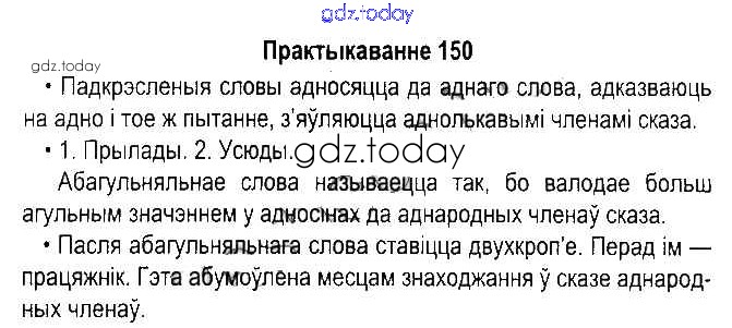 На страницах сайта gdz.today вы найдете учебный и вспомогательный материал, направленный на улучшения знаний школьной программы. ГДЗ - онлайн мир знаний Рашальнік да часткі 1. Практыкаванні 150 Учебнику по Белорусскому языку для 5 класса Красней, Несцяровіч Национальный институт образования 2014