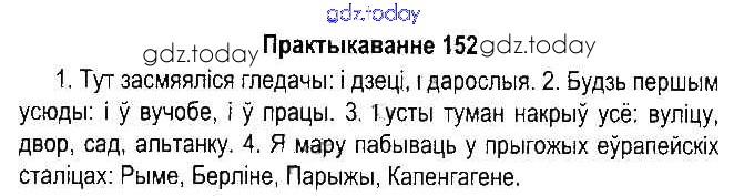 На страницах сайта gdz.today вы найдете учебный и вспомогательный материал, направленный на улучшения знаний школьной программы. ГДЗ - онлайн мир знаний Рашальнік да часткі 1. Практыкаванні 152 Учебнику по Белорусскому языку для 5 класса Красней, Несцяровіч Национальный институт образования 2014