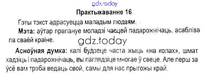 На страницах сайта gdz.today вы найдете учебный и вспомогательный материал, направленный на улучшения знаний школьной программы. ГДЗ - онлайн мир знаний Рашальнік да часткі 1. Практыкаванні 16 Учебнику по Белорусскому языку для 5 класса Красней, Несцяровіч Национальный институт образования 2014