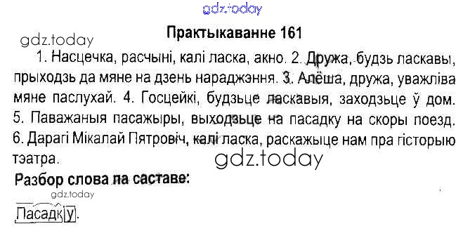 На страницах сайта gdz.today вы найдете учебный и вспомогательный материал, направленный на улучшения знаний школьной программы. ГДЗ - онлайн мир знаний Рашальнік да часткі 1. Практыкаванні 161 Учебнику по Белорусскому языку для 5 класса Красней, Несцяровіч Национальный институт образования 2014