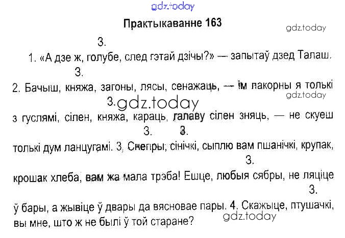 На страницах сайта gdz.today вы найдете учебный и вспомогательный материал, направленный на улучшения знаний школьной программы. ГДЗ - онлайн мир знаний Рашальнік да часткі 1. Практыкаванні 163 Учебнику по Белорусскому языку для 5 класса Красней, Несцяровіч Национальный институт образования 2014