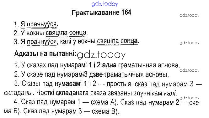 На страницах сайта gdz.today вы найдете учебный и вспомогательный материал, направленный на улучшения знаний школьной программы. ГДЗ - онлайн мир знаний Рашальнік да часткі 1. Практыкаванні 164 Учебнику по Белорусскому языку для 5 класса Красней, Несцяровіч Национальный институт образования 2014