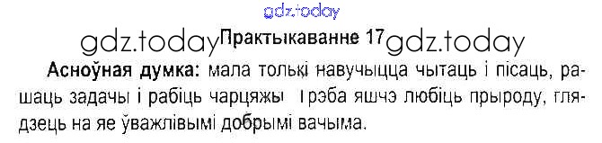 На страницах сайта gdz.today вы найдете учебный и вспомогательный материал, направленный на улучшения знаний школьной программы. ГДЗ - онлайн мир знаний Рашальнік да часткі 1. Практыкаванні 17 Учебнику по Белорусскому языку для 5 класса Красней, Несцяровіч Национальный институт образования 2014