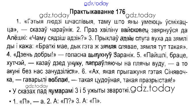 На страницах сайта gdz.today вы найдете учебный и вспомогательный материал, направленный на улучшения знаний школьной программы. ГДЗ - онлайн мир знаний Рашальнік да часткі 1. Практыкаванні 176 Учебнику по Белорусскому языку для 5 класса Красней, Несцяровіч Национальный институт образования 2014