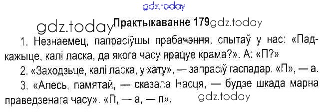 На страницах сайта gdz.today вы найдете учебный и вспомогательный материал, направленный на улучшения знаний школьной программы. ГДЗ - онлайн мир знаний Рашальнік да часткі 1. Практыкаванні 179 Учебнику по Белорусскому языку для 5 класса Красней, Несцяровіч Национальный институт образования 2014