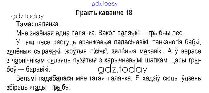 На страницах сайта gdz.today вы найдете учебный и вспомогательный материал, направленный на улучшения знаний школьной программы. ГДЗ - онлайн мир знаний Рашальнік да часткі 1. Практыкаванні 18 Учебнику по Белорусскому языку для 5 класса Красней, Несцяровіч Национальный институт образования 2014
