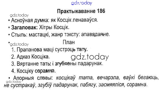 На страницах сайта gdz.today вы найдете учебный и вспомогательный материал, направленный на улучшения знаний школьной программы. ГДЗ - онлайн мир знаний Рашальнік да часткі 1. Практыкаванні 186 Учебнику по Белорусскому языку для 5 класса Красней, Несцяровіч Национальный институт образования 2014
