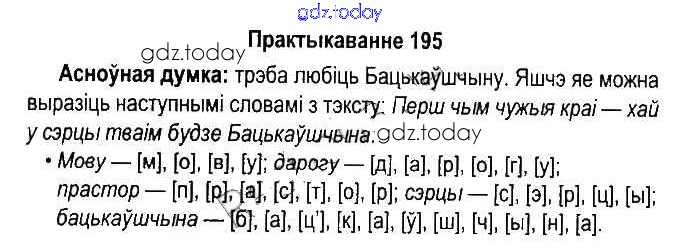 На страницах сайта gdz.today вы найдете учебный и вспомогательный материал, направленный на улучшения знаний школьной программы. ГДЗ - онлайн мир знаний Рашальнік да часткі 1. Практыкаванні 195 Учебнику по Белорусскому языку для 5 класса Красней, Несцяровіч Национальный институт образования 2014