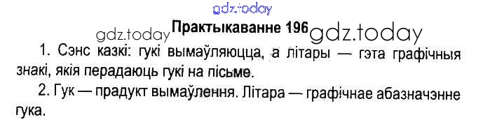 На страницах сайта gdz.today вы найдете учебный и вспомогательный материал, направленный на улучшения знаний школьной программы. ГДЗ - онлайн мир знаний Рашальнік да часткі 1. Практыкаванні 196 Учебнику по Белорусскому языку для 5 класса Красней, Несцяровіч Национальный институт образования 2014
