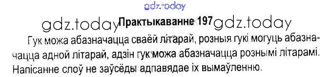 На страницах сайта gdz.today вы найдете учебный и вспомогательный материал, направленный на улучшения знаний школьной программы. ГДЗ - онлайн мир знаний Рашальнік да часткі 1. Практыкаванні 197 Учебнику по Белорусскому языку для 5 класса Красней, Несцяровіч Национальный институт образования 2014