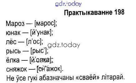 На страницах сайта gdz.today вы найдете учебный и вспомогательный материал, направленный на улучшения знаний школьной программы. ГДЗ - онлайн мир знаний Рашальнік да часткі 1. Практыкаванні 198 Учебнику по Белорусскому языку для 5 класса Красней, Несцяровіч Национальный институт образования 2014